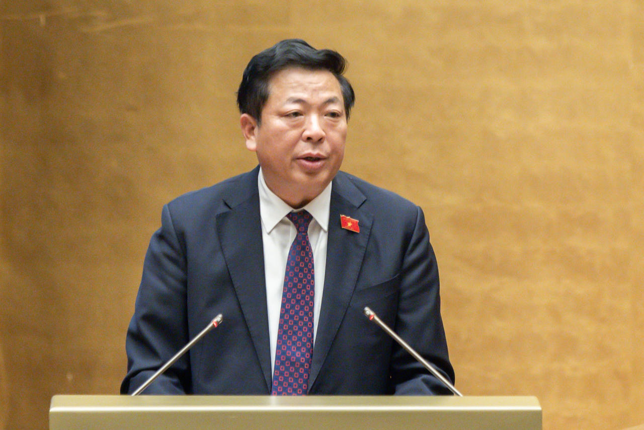Chủ nhiệm Ủy ban Pháp luật và Tư pháp của Quốc hội Hoàng Thanh Tùng trình bày báo cáo thẩm tra. Ảnh: Quang Vinh.
