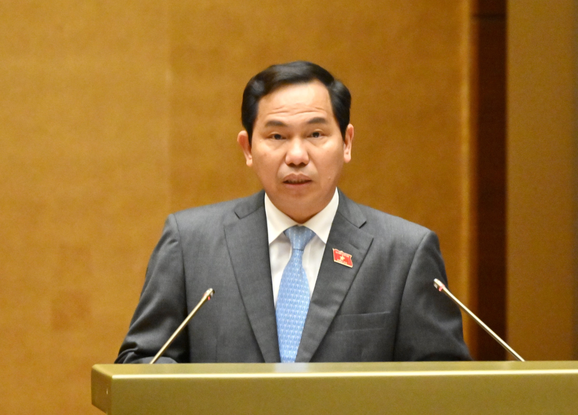 Tổng Thư ký Quốc hội, Chủ nhiệm Văn phòng Quốc hội Lê Quang Mạnh trình bày Tờ trình. Ảnh: Quang Khánh