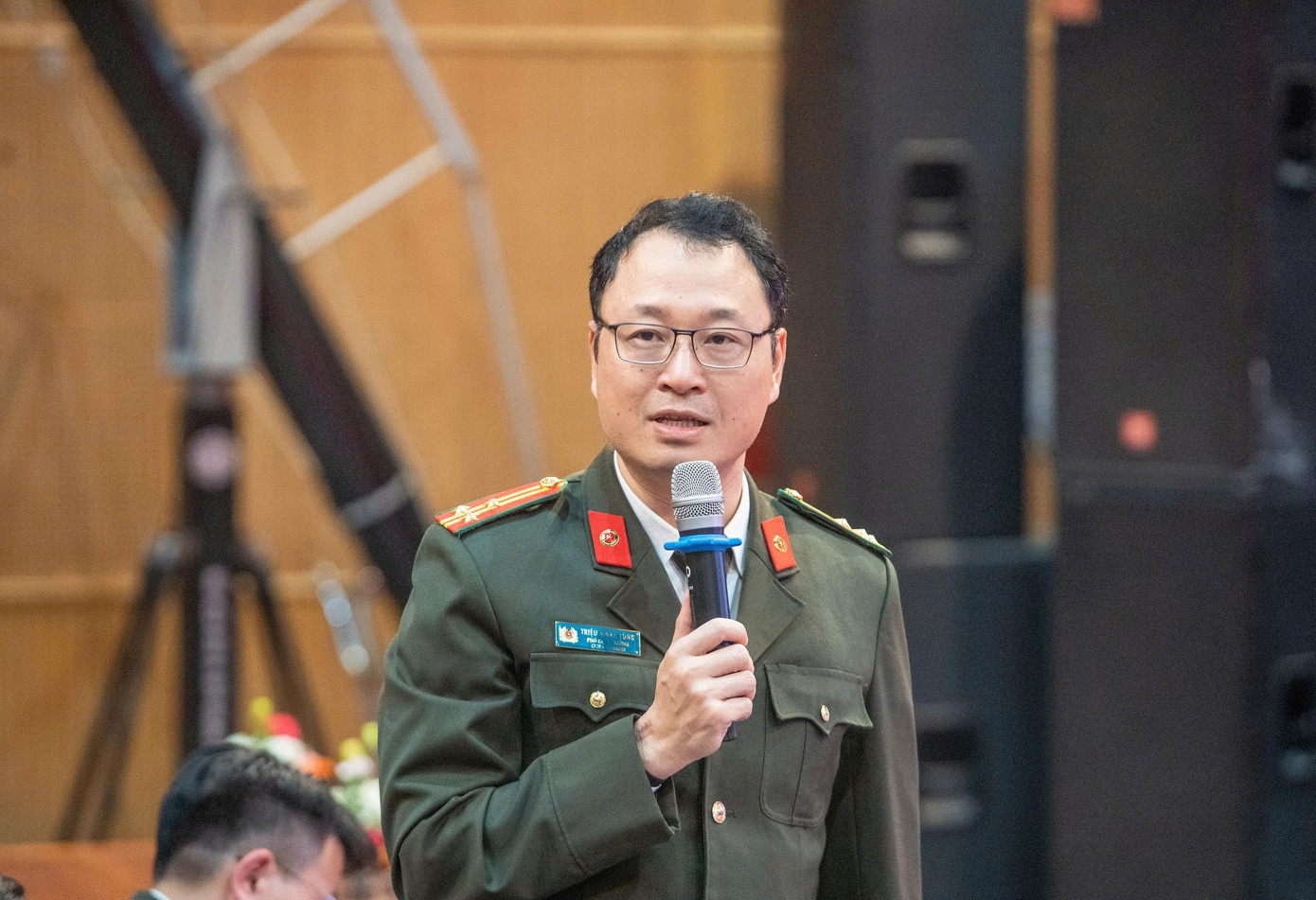 Thượng tá Triệu Mạnh Tùng, Phó Cục trưởng Cục An ninh mạng và phòng, chống tội phạm sử dụng công nghệ cao phát biểu tại tọa đàm. Ảnh: Phạm Nam.