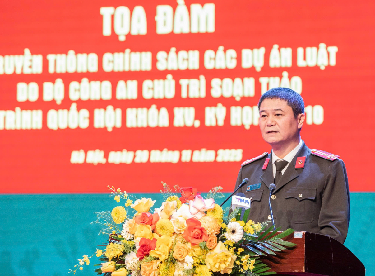 Thiếu tướng Đỗ Triệu Phong, Cục trưởng Cục Truyền thông Công an nhân dân và Thượng tá Ngô Đức Thắng, Phó Cục trưởng Cục Pháp chế và cải cách hành chính tư pháp (V03) đồng chủ trì tọa đàm.