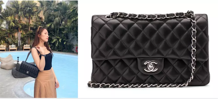 Mẫu túi đắt nhất trong bộ sưu tập túi hiệu của MC Khánh Vy có thể kể đến Chanel Flap Bag. Item này nổi bật với giá hơn 200 triệu đồng, thuộc dòng kinh điển được yêu thích bởi thiết kế vuông vức, khóa xoay CC đặc trưng và chất liệu da bê cao cấp. Mẫu túi này có kích thước trung bình, dây xích kim loại vàng hoặc bạc, dễ dàng đeo chéo hoặc vai. Khánh Vy thường mix Flap Bag với trang phục đơn giản để tôn lên sự sang trọng tinh tế, phù hợp phong cách quý cô hiện đại.