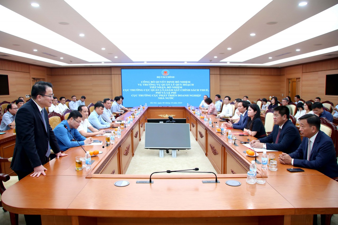 Tại hội nghị, thay mặt lãnh đạo Bộ Tài chính, Thứ trưởng Bộ Tài chính Trần Quốc Phương đã trao các quyết định bổ nhiệm Vụ trưởng Vụ Quản lý quy hoạch; tiếp nhận, bổ nhiệm lãnh đạo cấp trưởng của Cục Quản lý, giám sát chính sách thuế, phí và lệ phí; Cục Phát triển doanh nghiệp nhà nước.