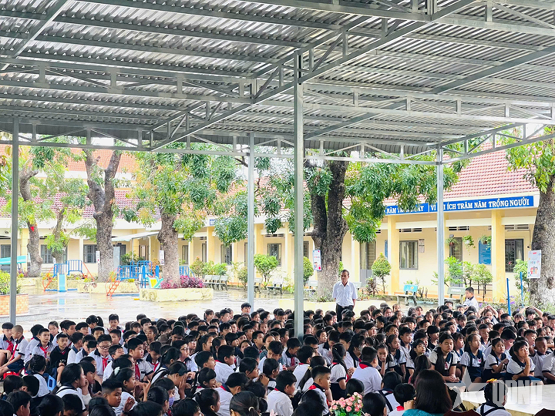 Phát biểu tại chương trình, Thượng tá Nguyễn Thành Trung, Phó chủ nhiệm Chính trị Bộ Tham mưu Quân khu 7 nhấn mạnh: “Việc đồng hành cùng các nhà trường trong xây dựng môi trường giáo dục xanh, sạch, đẹp là nội dung quan trọng của công tác dân vận, chính sách hậu phương Quân đội và phong trào "Lực lượng vũ trang Quân khu 7 chung sức xây dựng nông thôn mới". Công trình không chỉ phục vụ học tập và sinh hoạt ngoài giờ mà còn góp phần đảm bảo an toàn, chủ động ứng phó với nắng nóng cực đoan - vấn đề ngày càng phổ biến tại khu vực tỉnh Tây Ninh.
