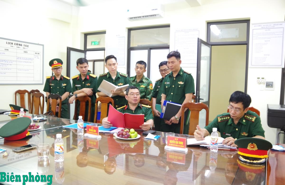 Đoàn công tác kiểm tra văn kiện tác chiến. Ảnh: Văn Tân