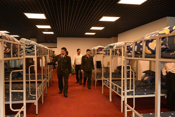 Lãnh đạo Bộ Tư lệnh Cảnh vệ kiểm tra khu vực bố trí nơi ăn, nghỉ tập trung của CBCS phục vụ nhiệm vụ bảo vệ Đại hội XIV của Đảng.