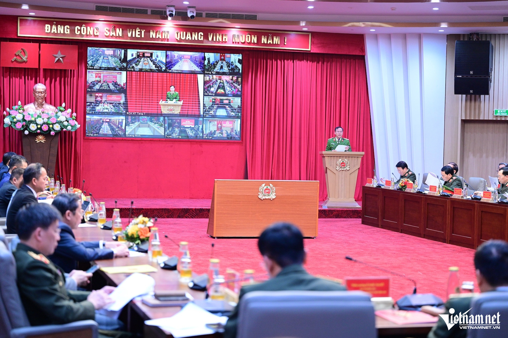 Hội nghị được tổ chức theo hình thức trực tiếp và trực tuyến đến công an các địa phương. Ảnh: Đình Hiếu