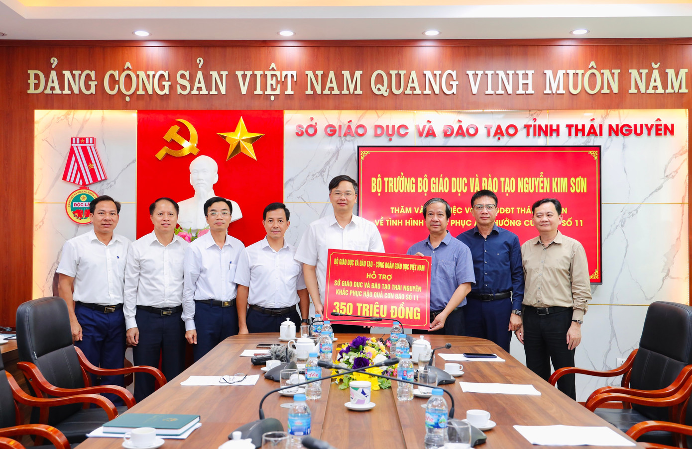 Bộ trưởng Bộ GD&ĐT tặng quà cho ngành Giáo dục Thái Nguyên nhằm hỗ trợ khắc phục khó khăn sau bão.