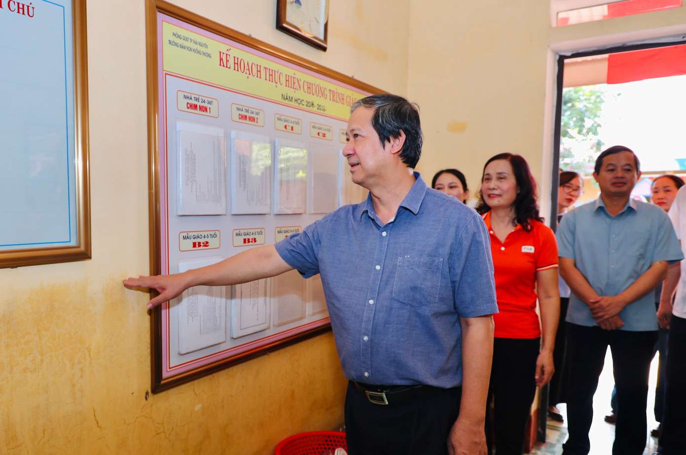 Bộ trưởng Nguyễn Kim Sơn thăm, động viên thầy cô giáo, học sinh các trường học ở Thái Nguyên.