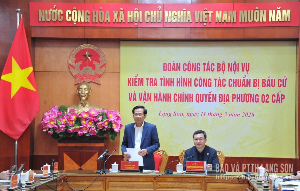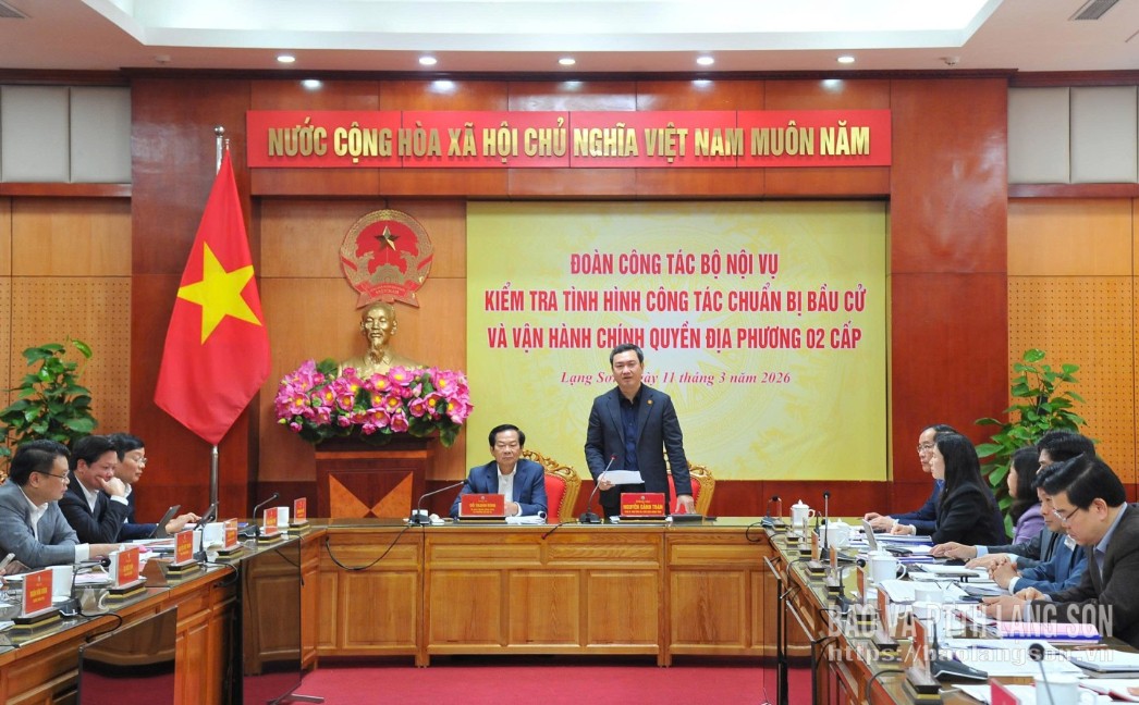Phát biểu kết luận, đồng chí Bộ trưởng Bộ Nội vụ ghi nhận, đánh giá cao công tác chuẩn bị bầu cử và kết quả vận hành mô hình chính quyền địa phương hai cấp của tỉnh.