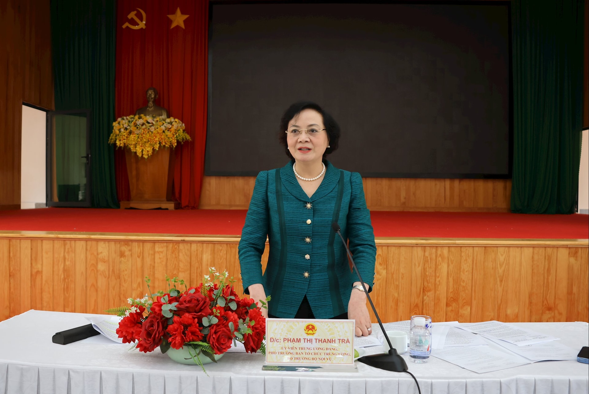 Đồng chí Phạm Thị Thanh Trà, Ủy viên Ban Chấp hành Trung ương Đảng, Bộ trưởng Bộ Nội vụ, chủ trì hội nghị.