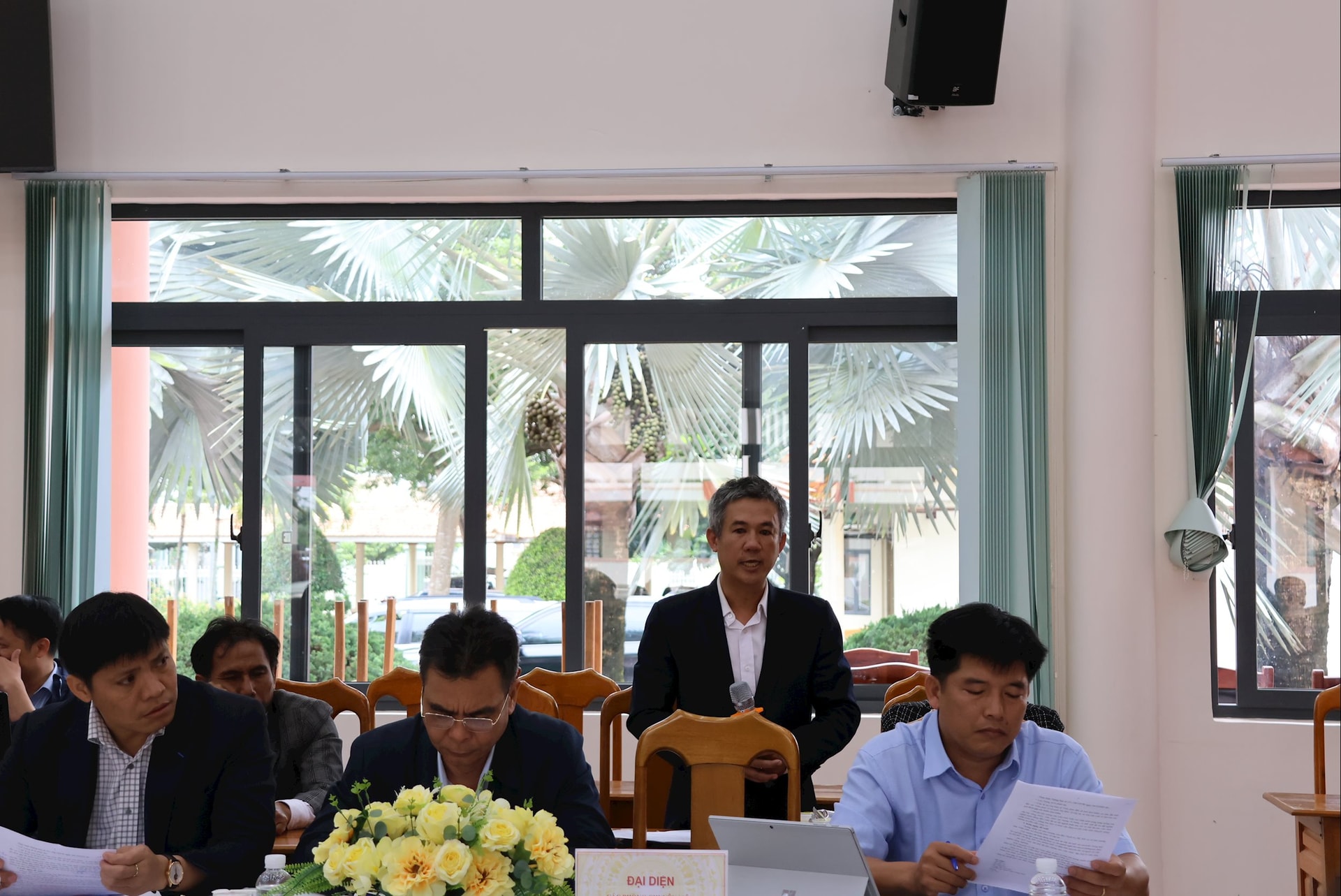 Lãnh đạo xã Đơn Dương nêu ý kiến tại hội nghị