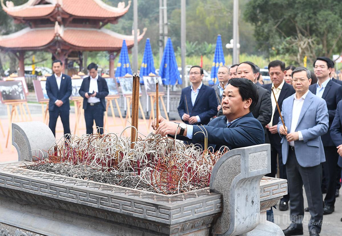 Đồng chí Trần Đức Thắng, Ủy viên Bộ Chính trị, Bộ trưởng Bộ Nông nghiệp và Môi trường và đoàn công tác dâng hương tại Khu tưởng niệm Chủ tịch Hồ Chí Minh và các vị tiền bối cách mạng. Ảnh: Huy Hoàng