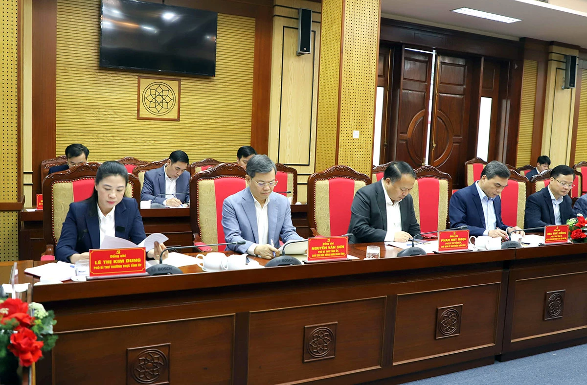 Các đồng chí Thường trực Tỉnh ủy dự buổi làm việc.