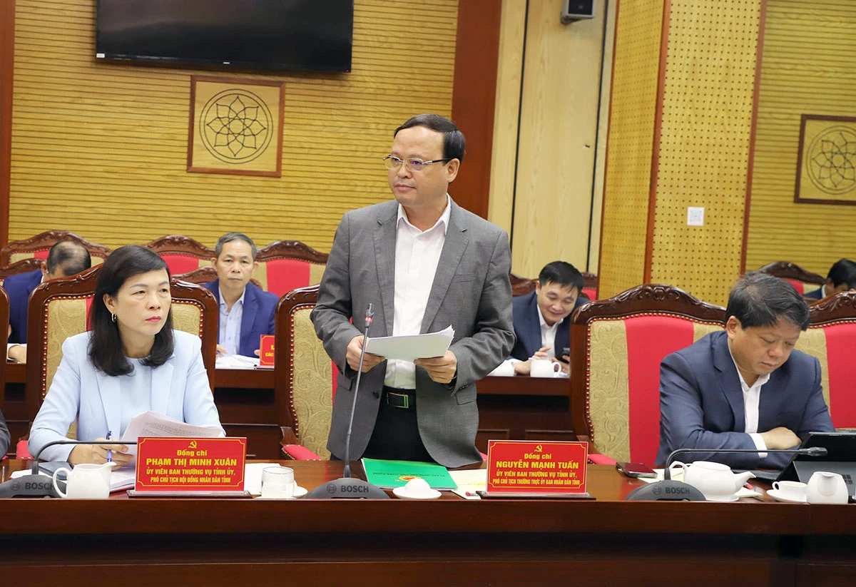 Phó Chủ tịch Thường trực UBND tỉnh Nguyễn Mạnh Tuấn báo cáo tại buổi làm việc.