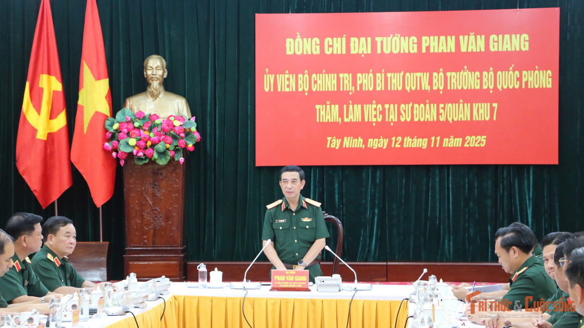 Chiều 12/11, Đại tướng Phan Văn Giang, Ủy viên Bộ Chính trị, Phó Bí thư Quân ủy Trung ương, Bộ trưởng Bộ Quốc phòng đã đến thăm và làm việc với Sư đoàn 5, Quân khu 7.