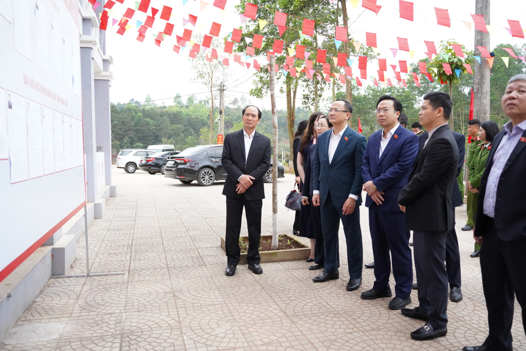Đoàn giám sát, kiểm tra của Ủy ban Thường vụ Quốc hội và Hội đồng Bầu cử quốc gia kiểm tra Khu vực bỏ phiếu số 01, xóm Nà Roác, xã Bạch Đằng.