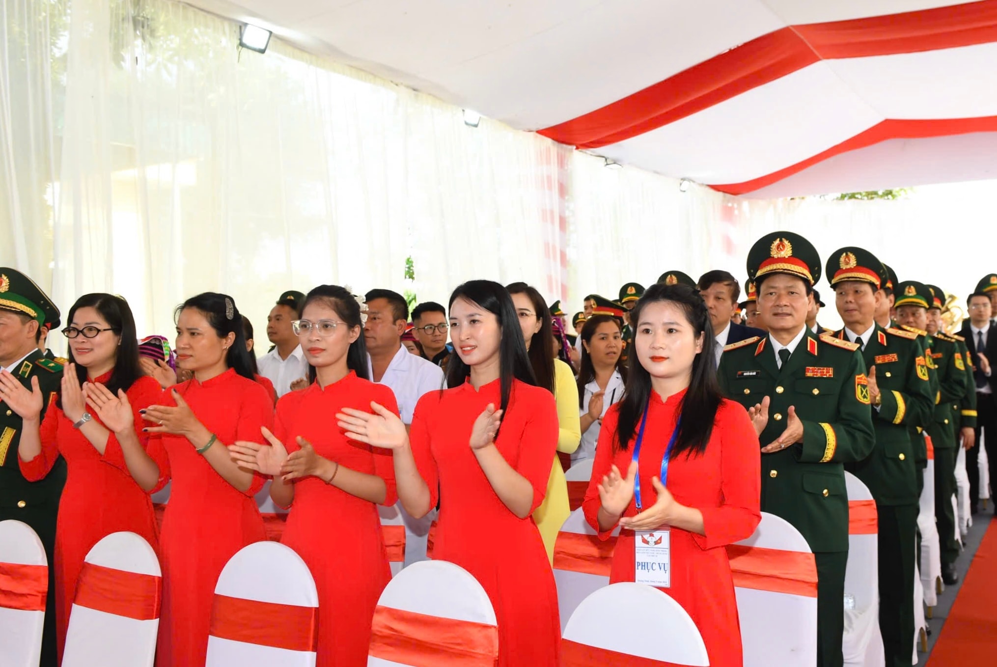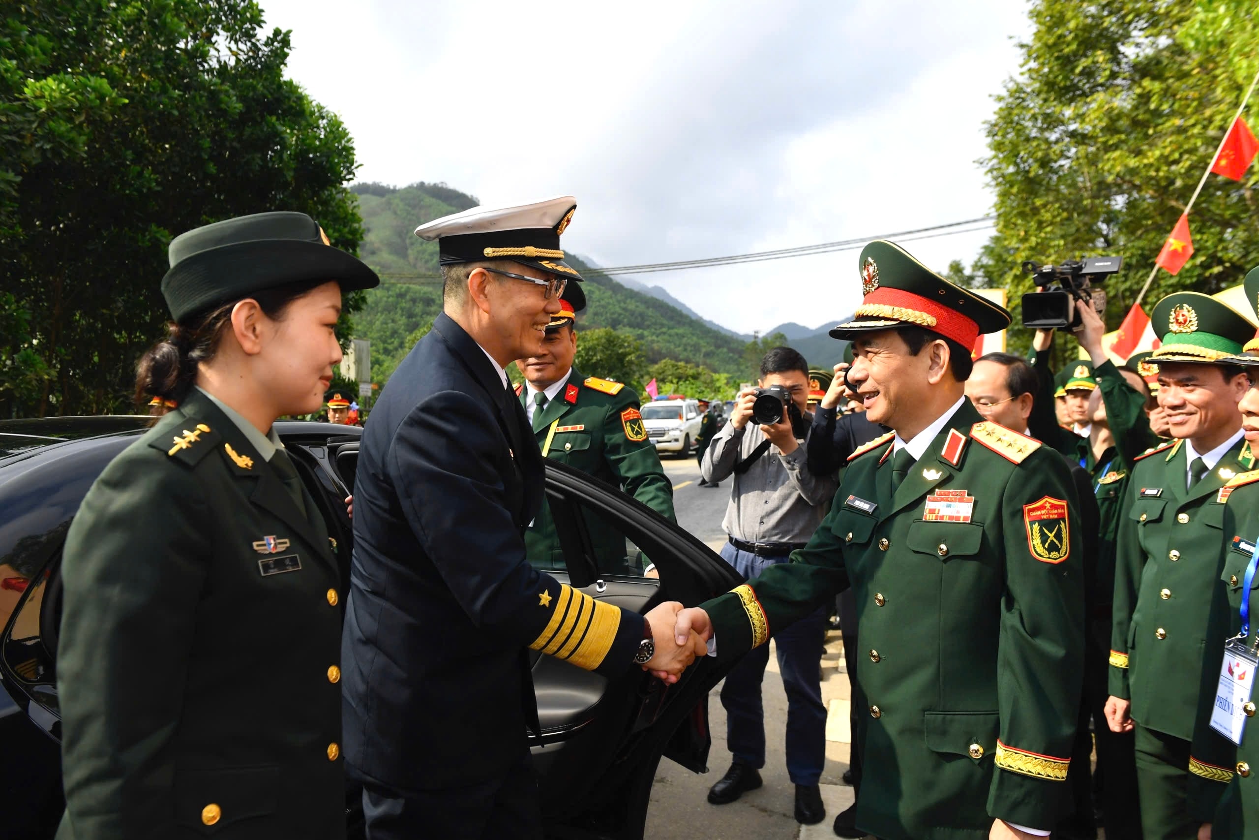 Bộ trưởng Bộ Quốc phòng, Đại tướng Phan Văn Giang và Bộ trưởng Bộ Quốc phòng Trung Quốc, Thượng tướng Đổng Quân chụp ảnh lưu niệm với các đại biểu xã Hải Sơn