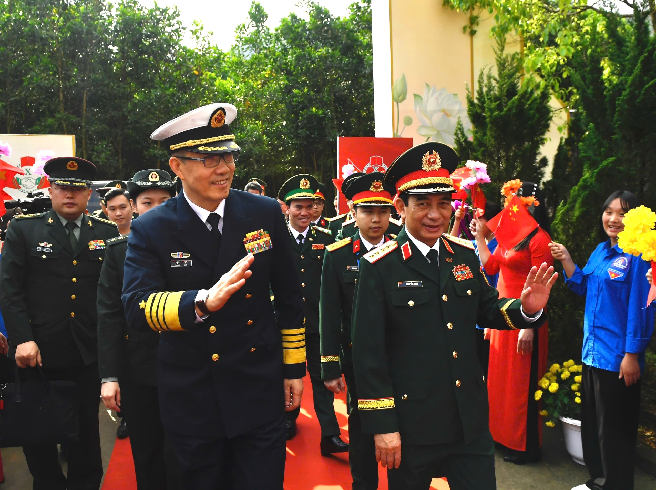 Bộ trưởng Bộ Quốc phòng, Đại tướng Phan Văn Giang và Bộ trưởng Bộ Quốc phòng Trung Quốc, Thượng tướng Đổng Quân với người dân xã Hải Sơn