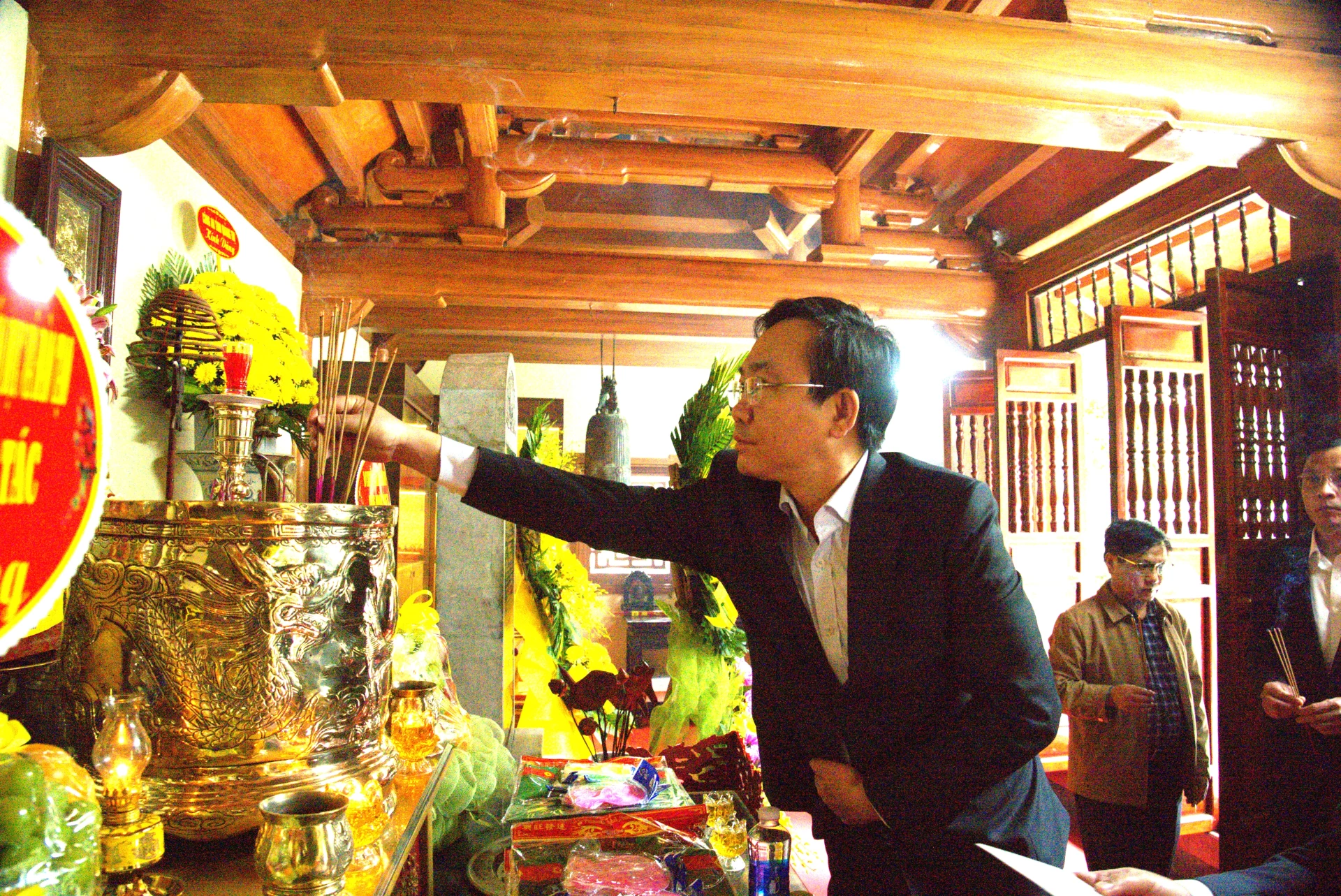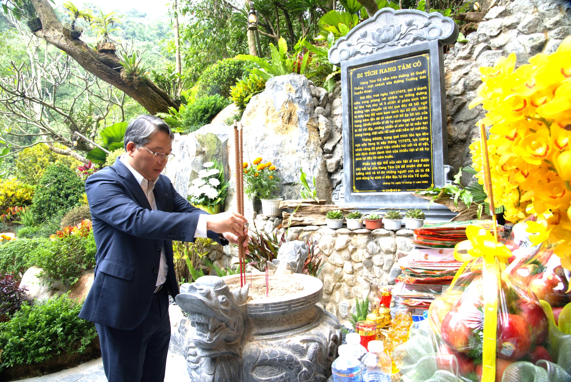 Đồng chí Hoàng Xuân Tân, Phó Chủ tịch UBND tỉnh dâng hương tưởng nhớ các anh hùng liệt sĩ - Ảnh: QV