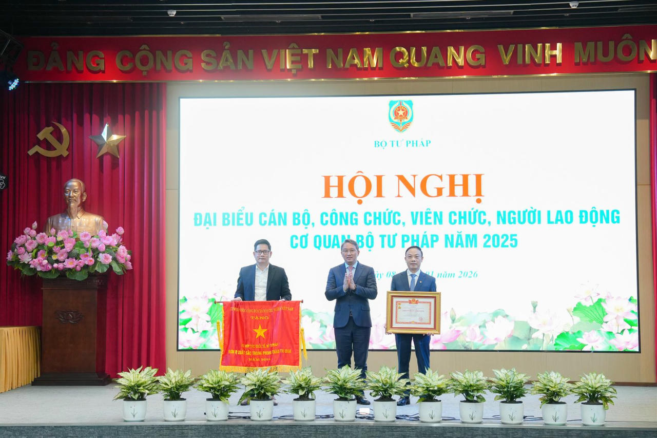 Hội nghị đã công bố và trao tặng Huân chương Lao động hạng Ba cho 1 tập thể, 2 cá nhân; danh hiệu Chiến sĩ thi đua toàn quốc cho Giám đốc Học viện Tư pháp Nguyễn Xuân Thu, Cờ thi đua của Chính phủ cho Vụ Hợp tác quốc tế; Bằng khen của Thủ tướng Chính phủ cho nhiều tập thể, cá nhân thuộc Bộ Tư pháp; đồng thời phát động phong trào thi đua năm 2026.