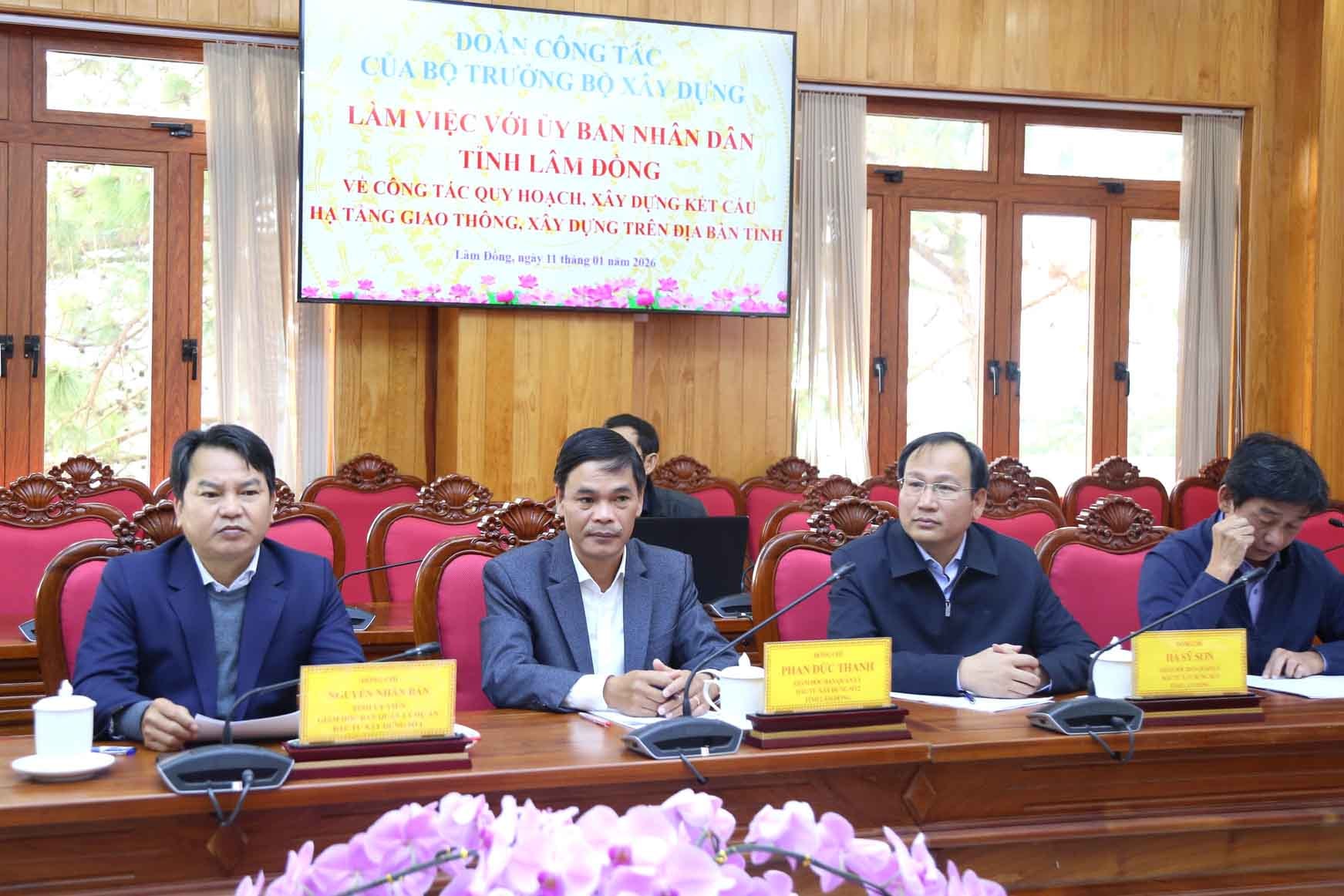 Sáng 11/1, Ủy viên Ban Chấp hành Trung ương Đảng, Bộ trưởng Bộ Xây dựng Trần Hồng Minh dẫn đầu Đoàn công tác Bộ Xây dựng làm việc với UBND tỉnh Lâm Đồng về quy hoạch, xây dựng kết cấu hạ tầng giao thông, xây dựng trên địa bàn.