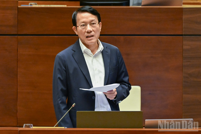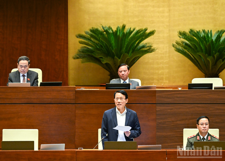 Bộ trưởng Công an Lương Tam Quang phát biểu tiếp thu, giải trình các vấn đề đại biểu Quốc hội nêu trong phiên thảo luận ở hội trường sáng 12/11. (Ảnh: DUY LINH)