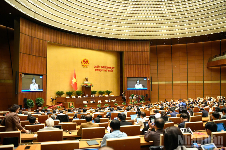 Quang cảnh phiên thảo luận ở hội trường sáng 12/11. (Ảnh: DUY LINH)
