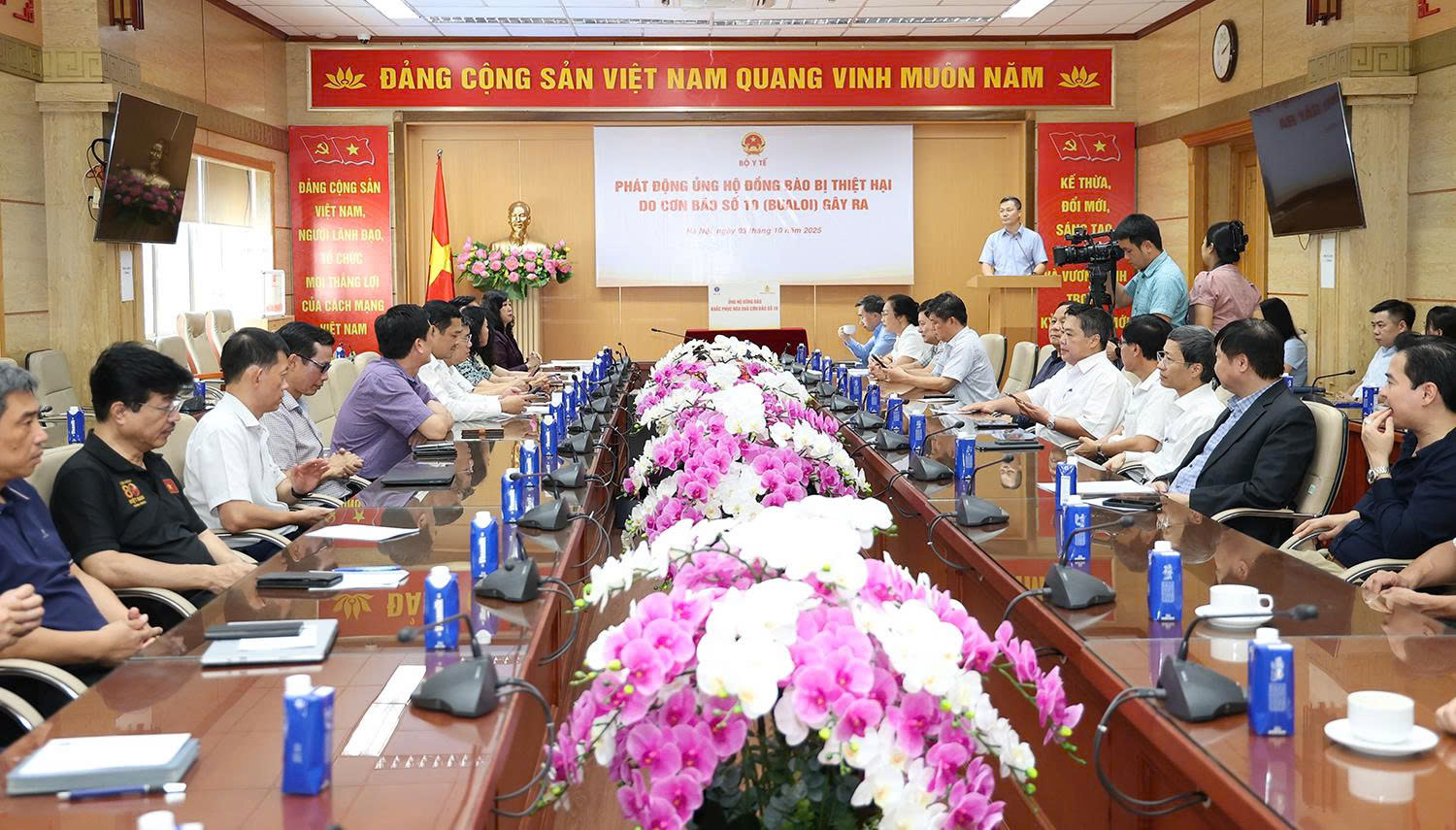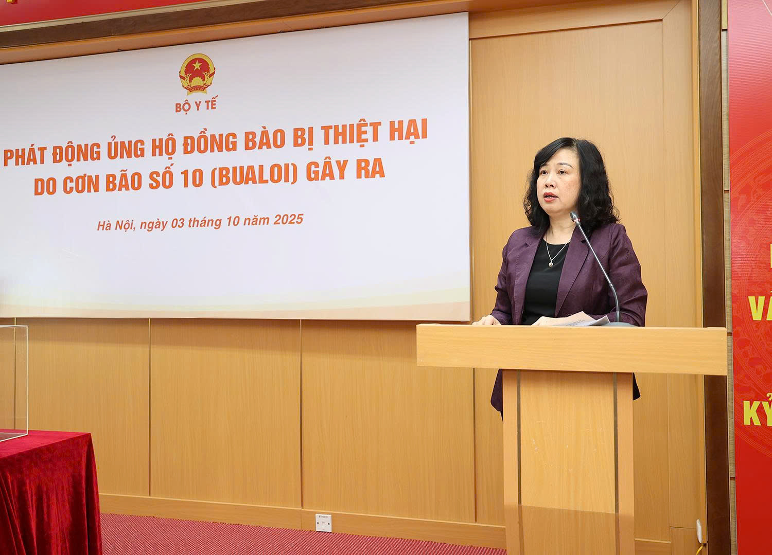 Ủy viên Trung ương Đảng, Bộ trưởng Bộ Y tế Đào Hồng Lan thay mặt lãnh đạo Bộ phát động phong trào cán bộ công chức, viên chức lao động ngành y tế chung tay ủng hộ đồng bào các tỉnh bị thiệt hại do bão số 10.