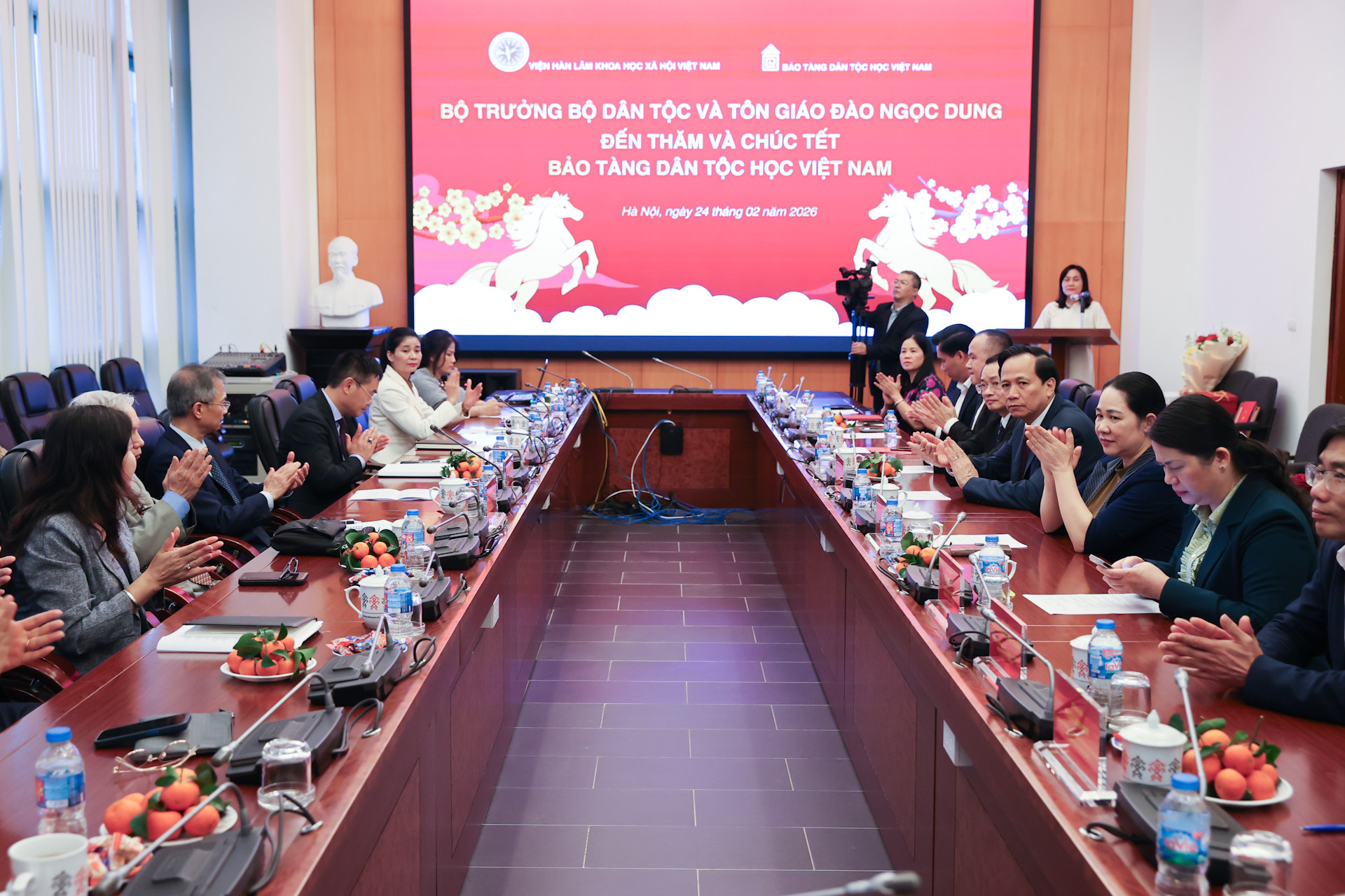 Bộ trưởng Đào Ngọc Dung cùng đoàn công tác của Bộ Dân tộc và Tôn giáo đến thăm, chúc Tết Bảo tàng Dân tộc học Việt Nam. Ảnh: Lê Anh Dũng