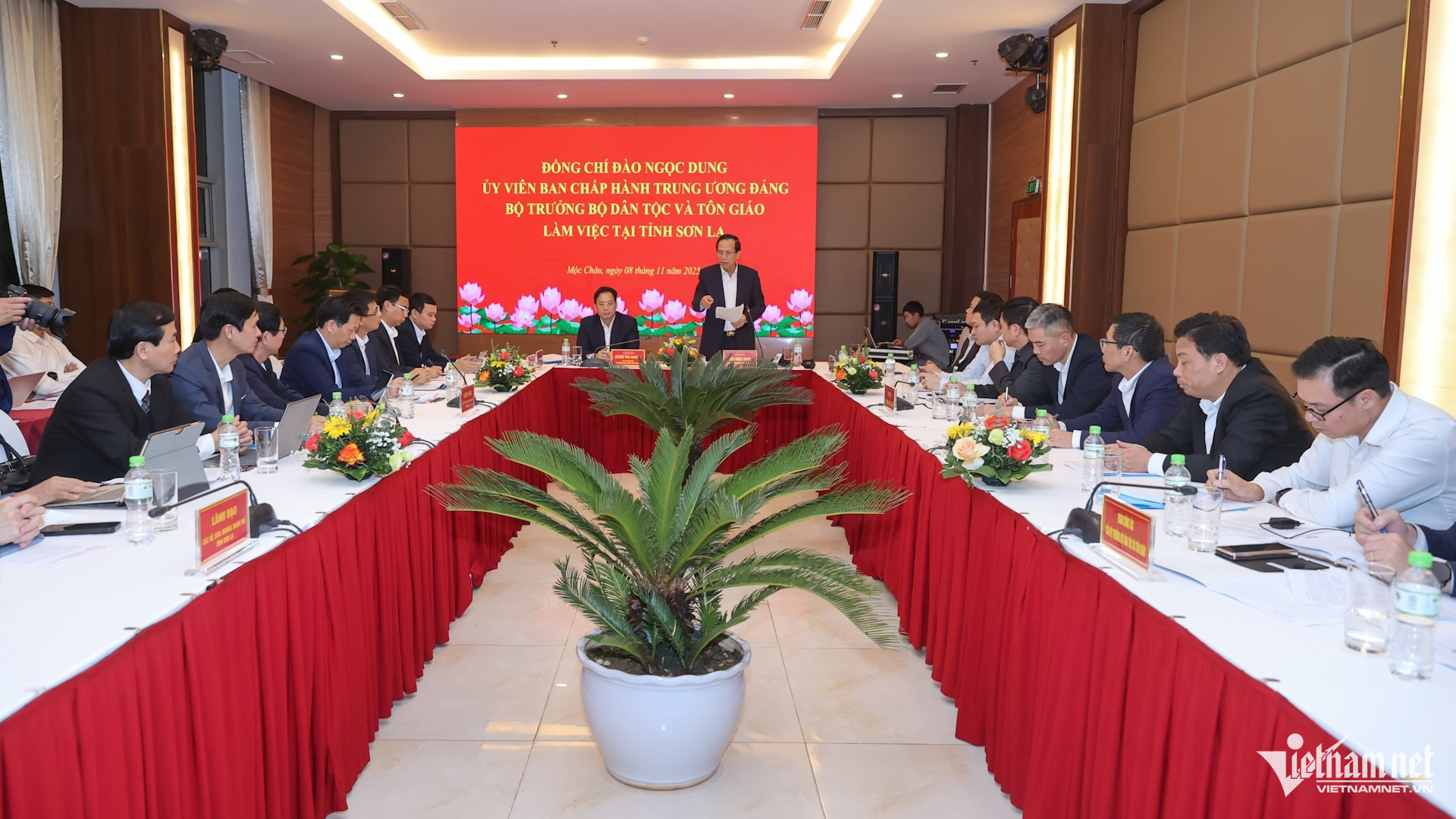 Chiều 8/11/2025, tại tỉnh Sơn La, Đoàn công tác của Chính phủ do Ủy viên Trung ương Đảng, Bộ trưởng Bộ Dân tộc và Tôn giáo Đào Ngọc Dung làm trưởng đoàn đã làm việc với tỉnh Sơn La.