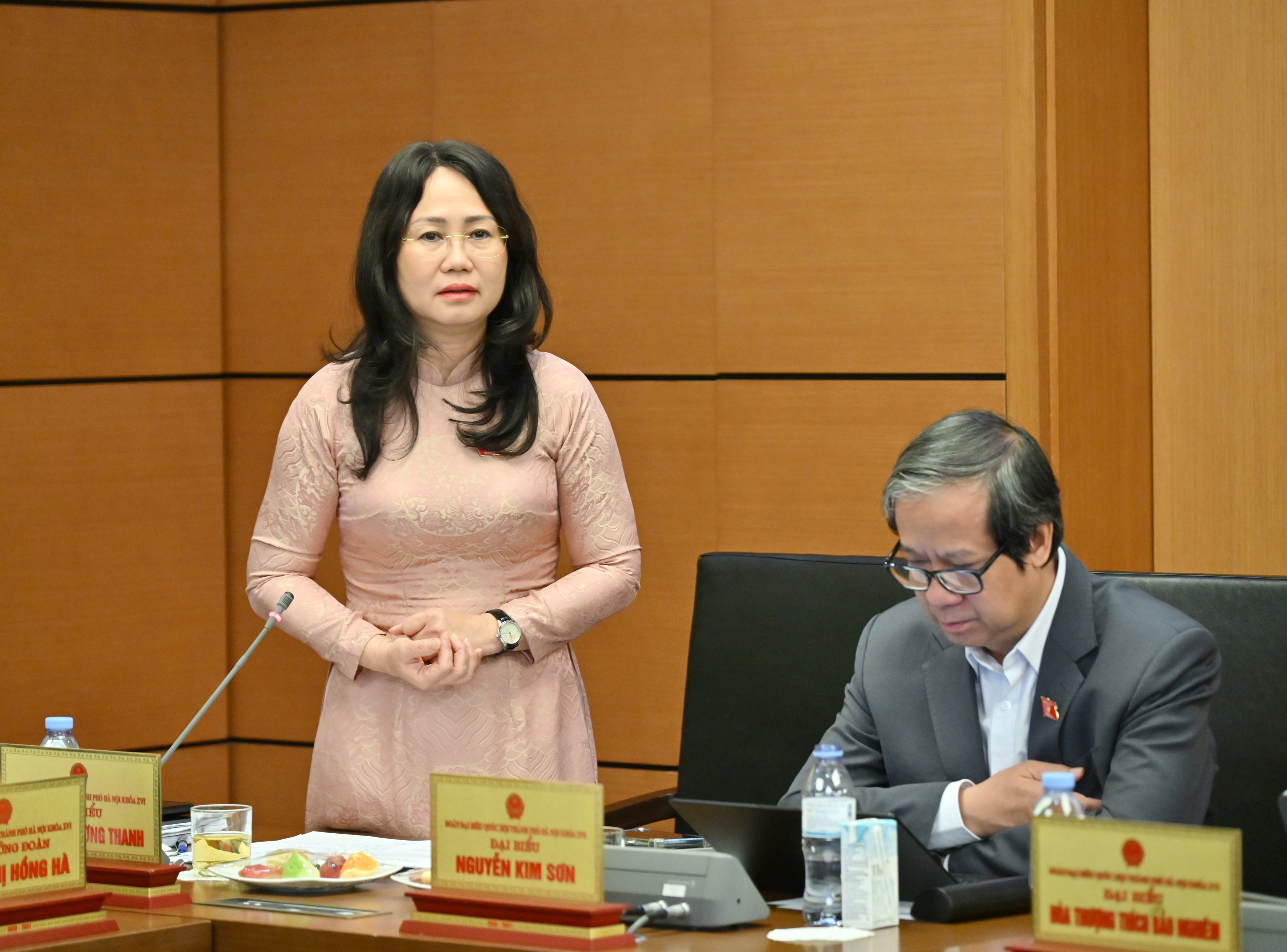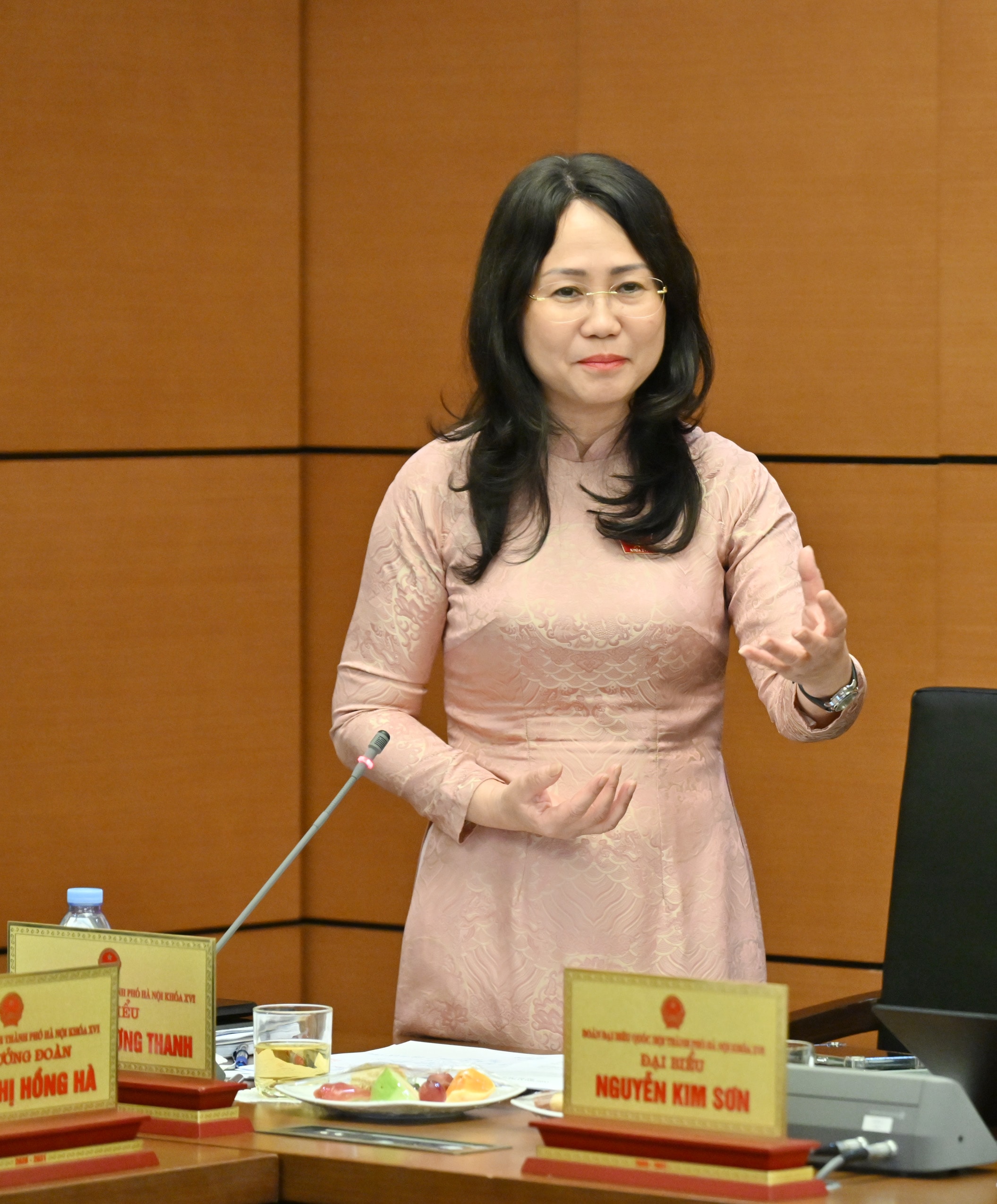 Bộ trưởng Bộ Văn hóa, Thể thao và Du lịch Lâm Thị Phương Thanh phát biểu thảo luận tại Tổ Hà Nội sáng 20-4. Ảnh: Quang Khánh