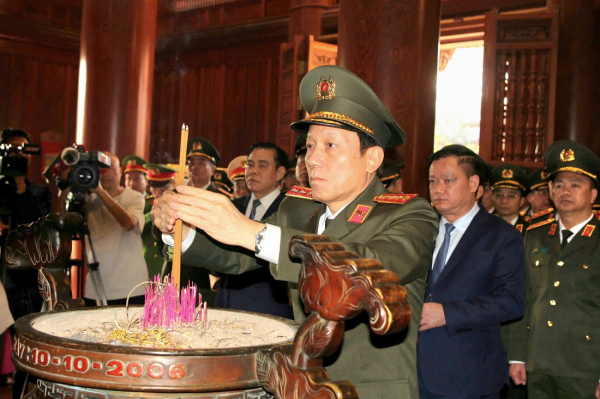 Trước anh linh của Người, Đoàn đại biểu nguyện tiếp tục phát huy truyền thống anh hùng cách mạng, nêu cao tinh thần trách nhiệm, không ngừng rèn luyện bản lĩnh chính trị, phẩm chất đạo đức, nâng cao trình độ nghiệp vụ; quyết tâm xây dựng lực lượng Công an nhân dân thật sự trong sạch, vững mạnh, chính quy, tinh nhuệ, hiện đại, đáp ứng yêu cầu nhiệm vụ trong tình hình mới.
