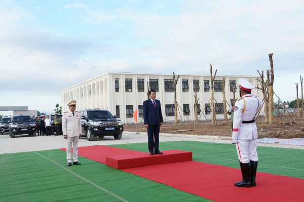 Bộ trưởng Lương Tam Quang, Ủy viên Bộ Chính trị, Bí thư Đảng ủy Công an Trung ương, Bộ trưởng Bộ Công an duyệt đội danh dự.
