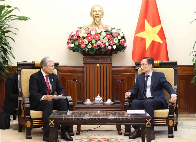 Bộ trưởng Ngoại giao Lê Hoài Trung tiếp Thống đốc tỉnh Tochigi (Nhật Bản) Fukuda Tomikazu. Ảnh: An Đăng/TTXVN