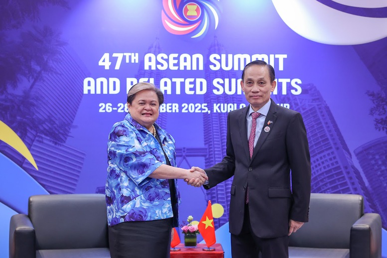 Bộ trưởng Bộ Ngoại giao Lê Hoài Trung và Bộ trưởng Bộ Ngoại giao Philippines Maria Theresa Lazaro - Ảnh: VGP/Nhật Bắc