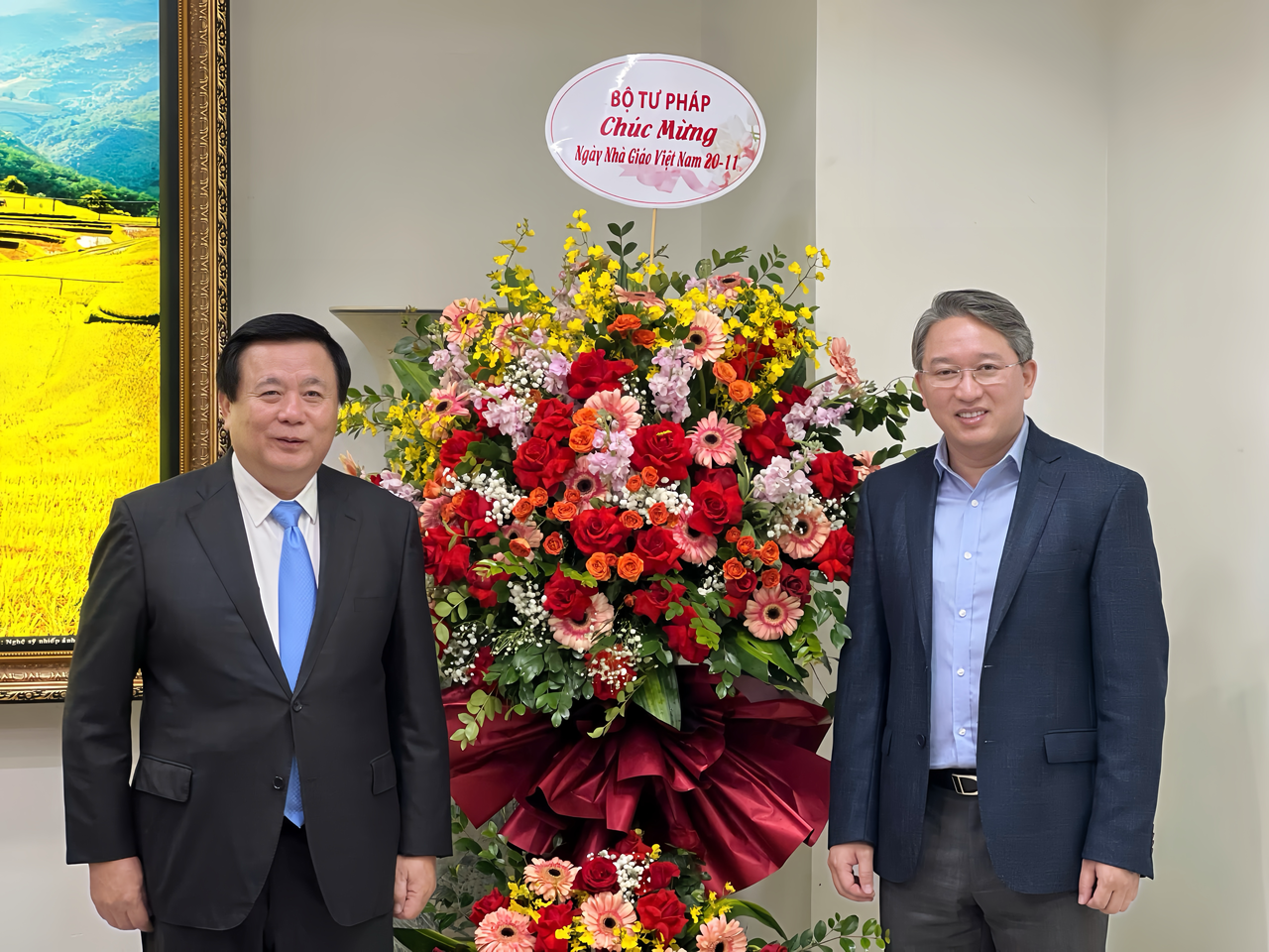 Trong không khí ấm áp và trang trọng, thay mặt lãnh đạo Bộ Tư pháp, Bộ trưởng Nguyễn Hải Ninh gửi lời chúc mừng tốt đẹp nhất tới Ban Giám đốc và đội ngũ cán bộ, giảng viên, công chức, viên chức, người lao động của Học viện nhân dịp Ngày Nhà giáo Việt Nam 20/11.