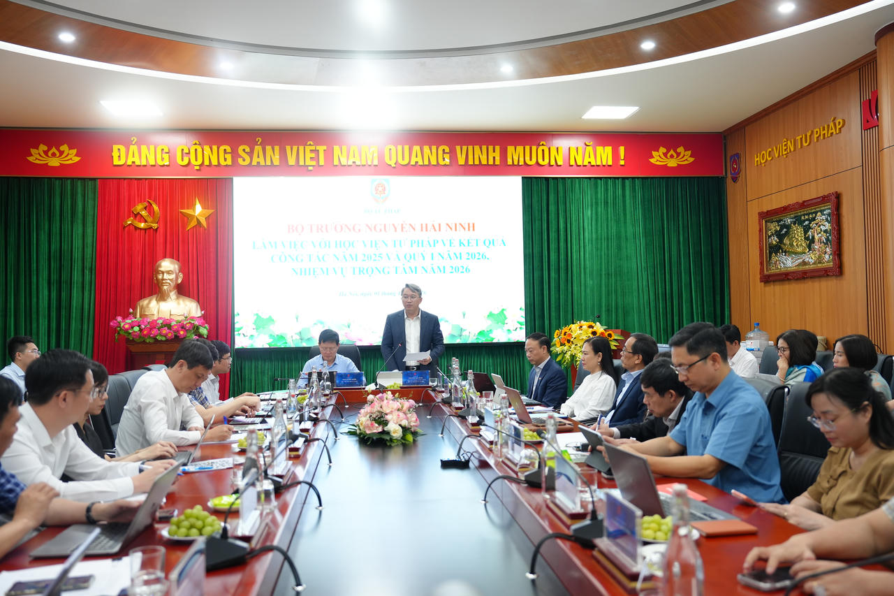 Theo báo cáo kết quả công tác năm 2025 và quý I/2026, nhiệm vụ trọng tâm năm 2026 của Học viện Tư pháp, Đảng ủy, lãnh đạo Học viện Tư pháp đã lãnh đạo, chỉ đạo các đơn vị thuộc Học viện nỗ lực, quyết tâm hoàn thành thắng lợi các nhiệm vụ chính trị năm 2025.