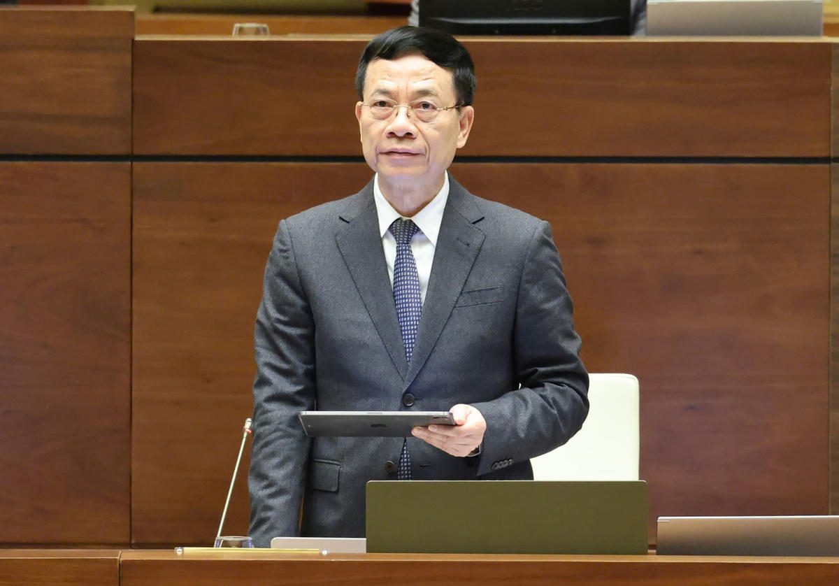Bộ trưởng Bộ Khoa học và Công nghệ Nguyễn Mạnh Hùng phát biểu giải trình trước Quốc hội (Ảnh: Quang Vinh)