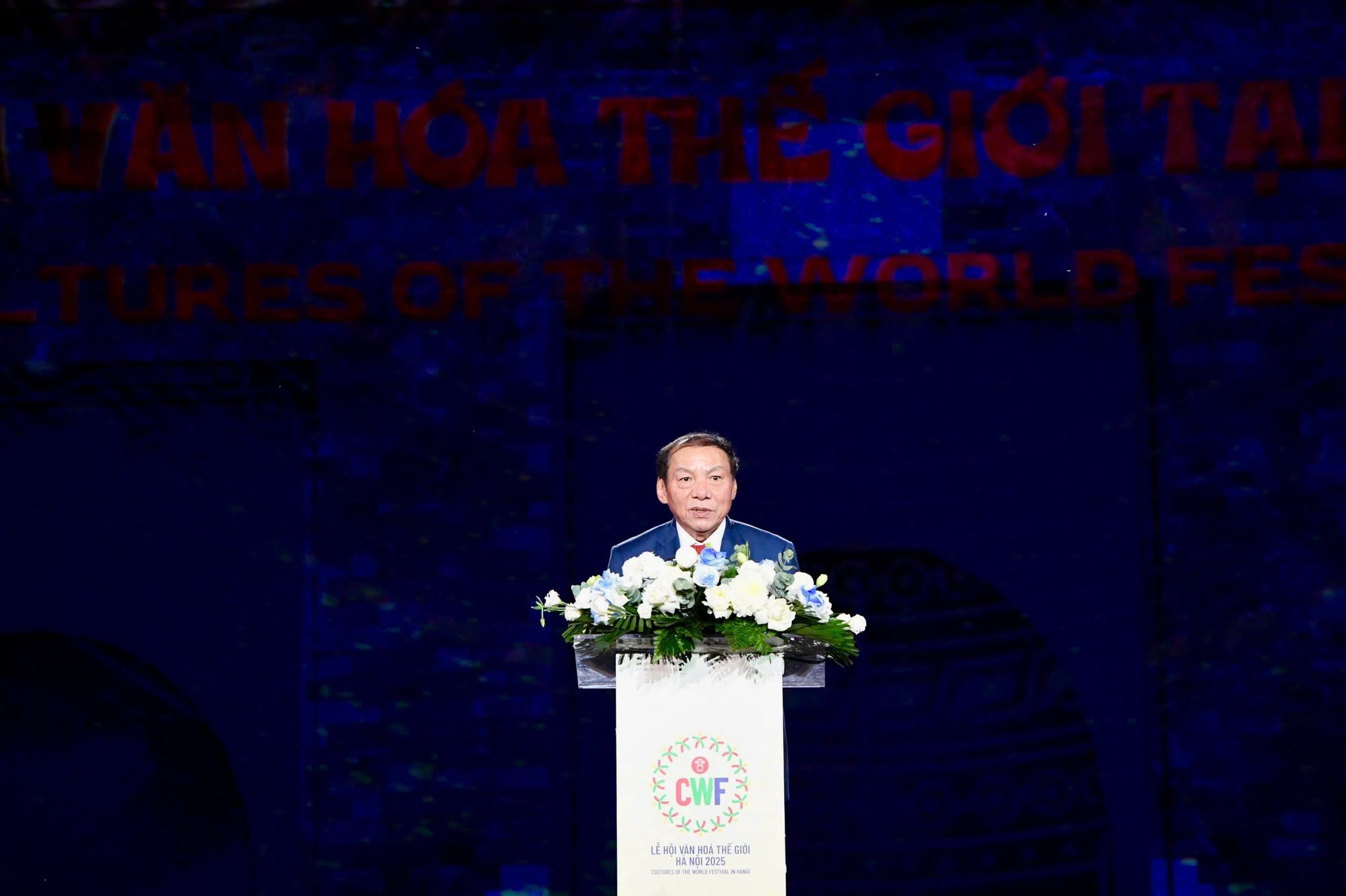 Phát biểu tại lễ bế mạc, ông Nguyễn Văn Hùng - Bộ trưởng Bộ Văn hóa, Thể thao và Du lịch (Bộ VHTTDL) cho biết, Lễ hội Văn hóa Thế giới tại Hà Nội khởi nguồn từ sáng kiến của bà Ngô Phương Ly - phu nhân Tổng Bí thư Tô Lâm.