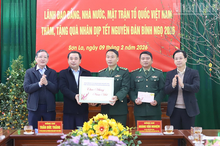 Đồng chí Trần Đức Thắng, Ủy viên Bộ Chính trị, Bộ trưởng Nông nghiệp và Môi trường thăm, động viên, chúc Tết cán bộ, chiến sĩ đồn biên phòng Chiềng Sơn.