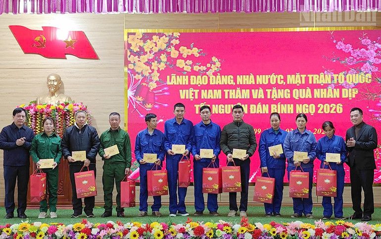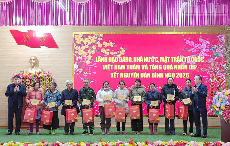 Đoàn công tác do đồng chí Bộ trưởng Nông nghiệp và Môi trường làm trưởng đoàn tặng quà Tết cho Đồn Biên phòng Chiềng Sơn.