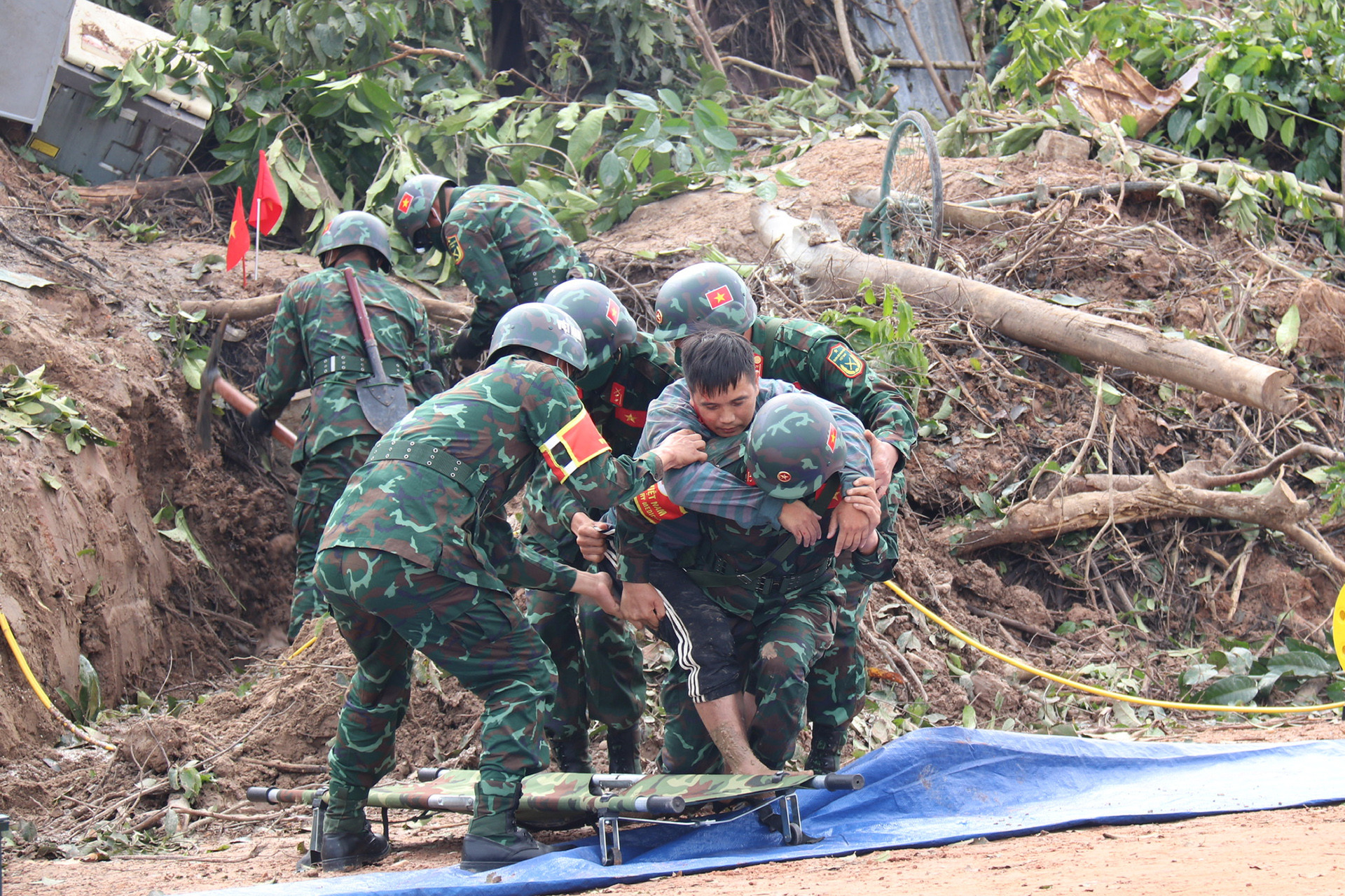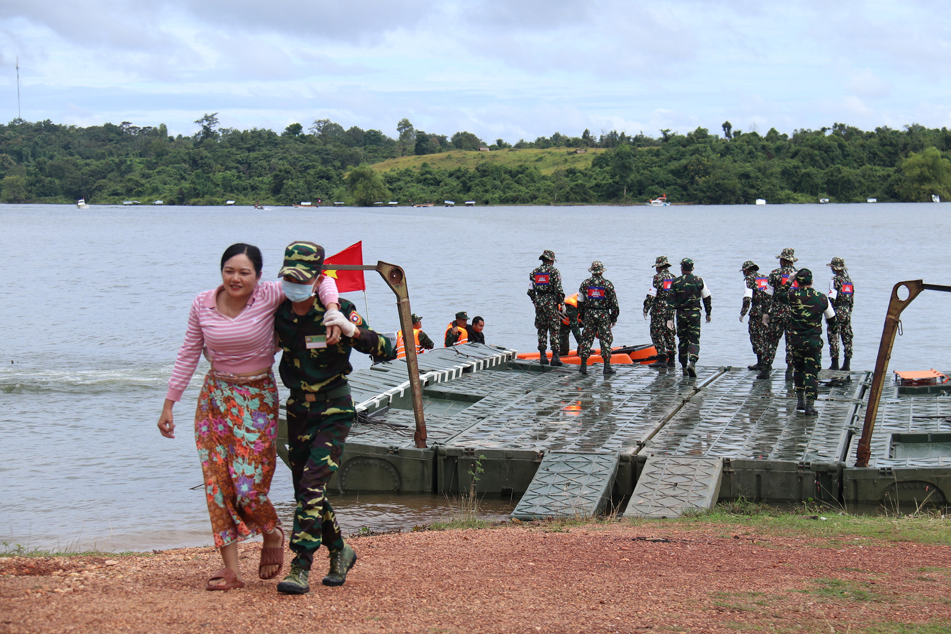 Lực lượng quân đội ba nước thực hành tuần tra, tìm kiếm người gặp nạn trong phạm vi khu vực lũ lụt theo các điểm bằng thuyền và máy bay không người lái; cứu nạn và giúp đỡ người gặp nạn còn mắc kẹt trong các ngôi nhà, trên cây và khu vực bị cô lập; cứu nạn và giúp đỡ người gặp nạn bị thương tích do nước cuốn trôi; tổ y tế khẩn cấp sơ cứu người bị nạn trước khi chuyển đến Bệnh viện dã chiến.