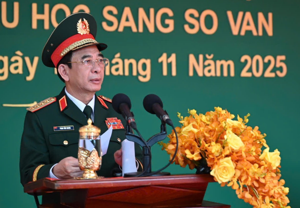“Việc xây dựng công trình hữu nghị Trường Tiểu học Sang Sovan là minh chứng rõ ràng tình hữu nghị không chỉ thể hiện trong hợp tác quốc phòng - an ninh mà còn trong việc chăm lo, bồi dưỡng cho thế hệ mai sau”, Đại tướng Phan Văn Giang khẳng định.