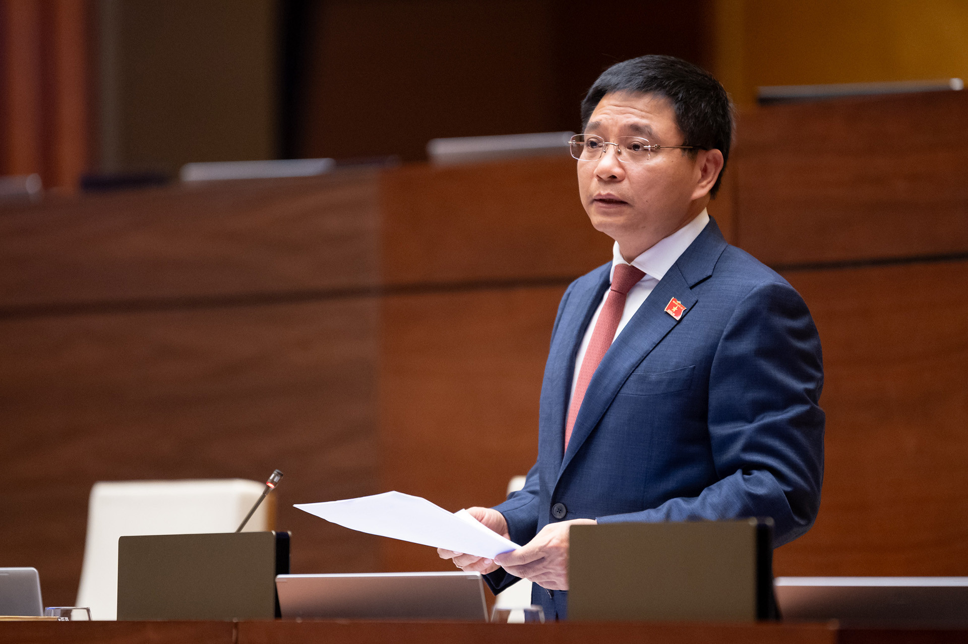 Bộ trưởng Tài chính Nguyễn Văn Thắng phát biểu giải trình. Ảnh: Quốc hội