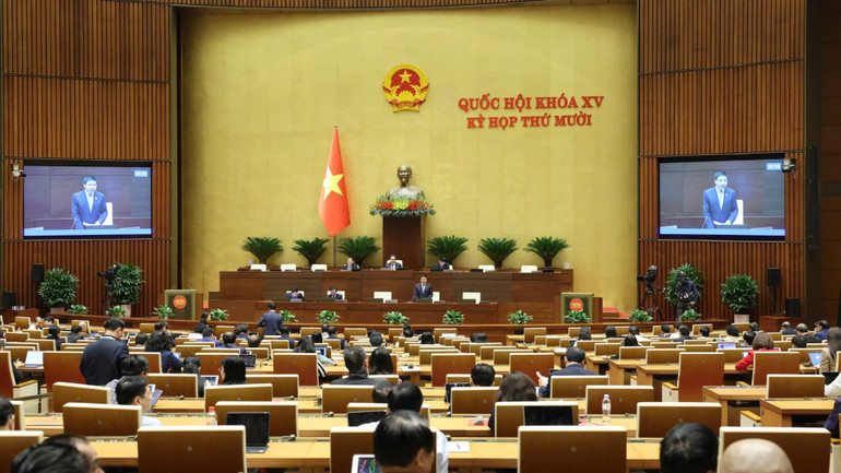 Quang cảnh phiên thảo luận ở hội trường sáng 27/11. (Ảnh: DUY LINH)