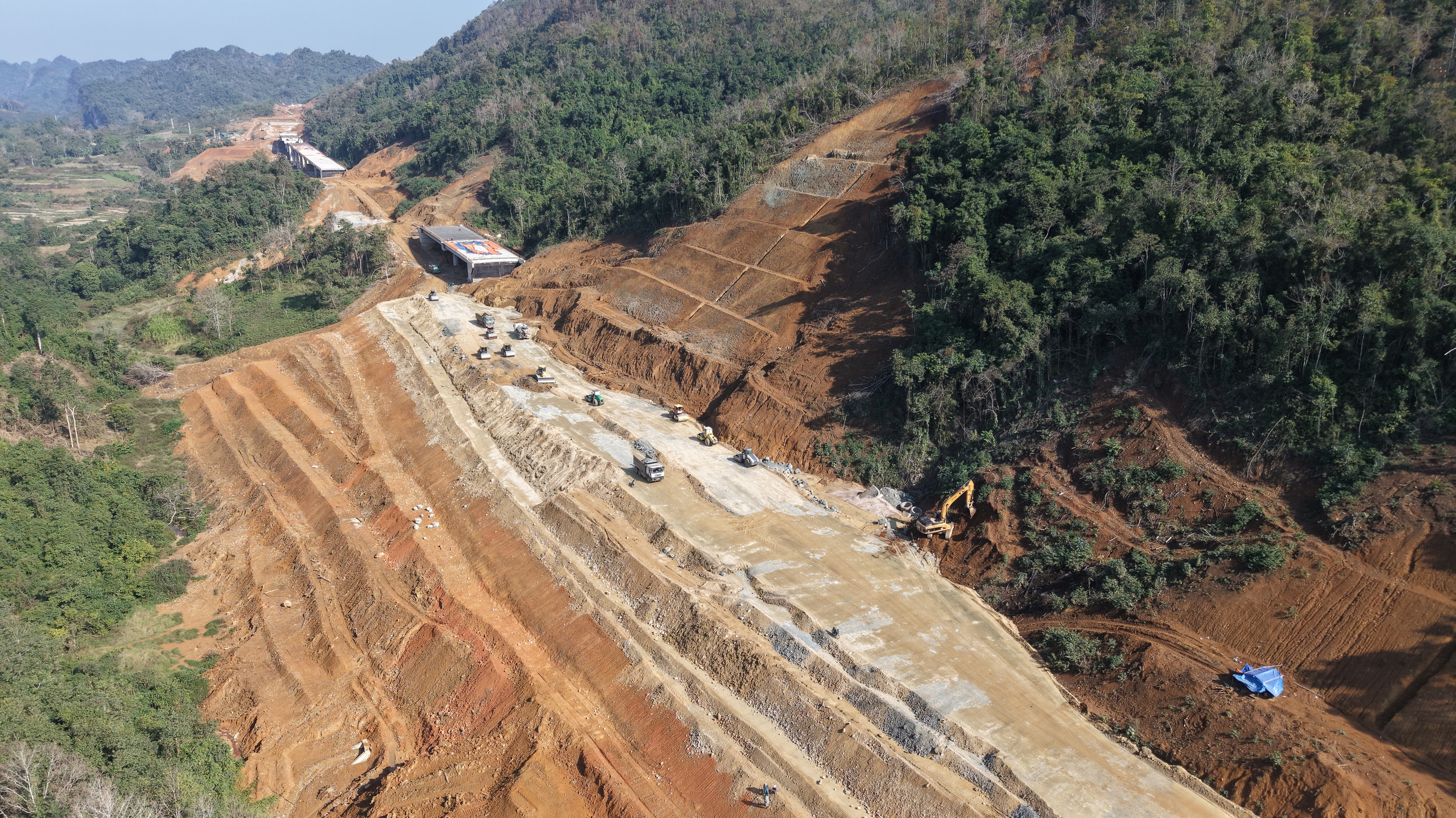 Các nhà thầu đang đẩy nhanh tiến độ thi công cao tốc Đồng Đăng - Trà Lĩnh.