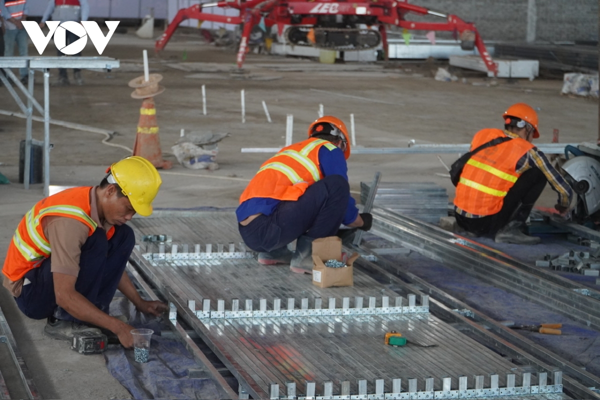 Công nhân đang tích cực thi công các hạng mục nhà ga sân bay Long Thành