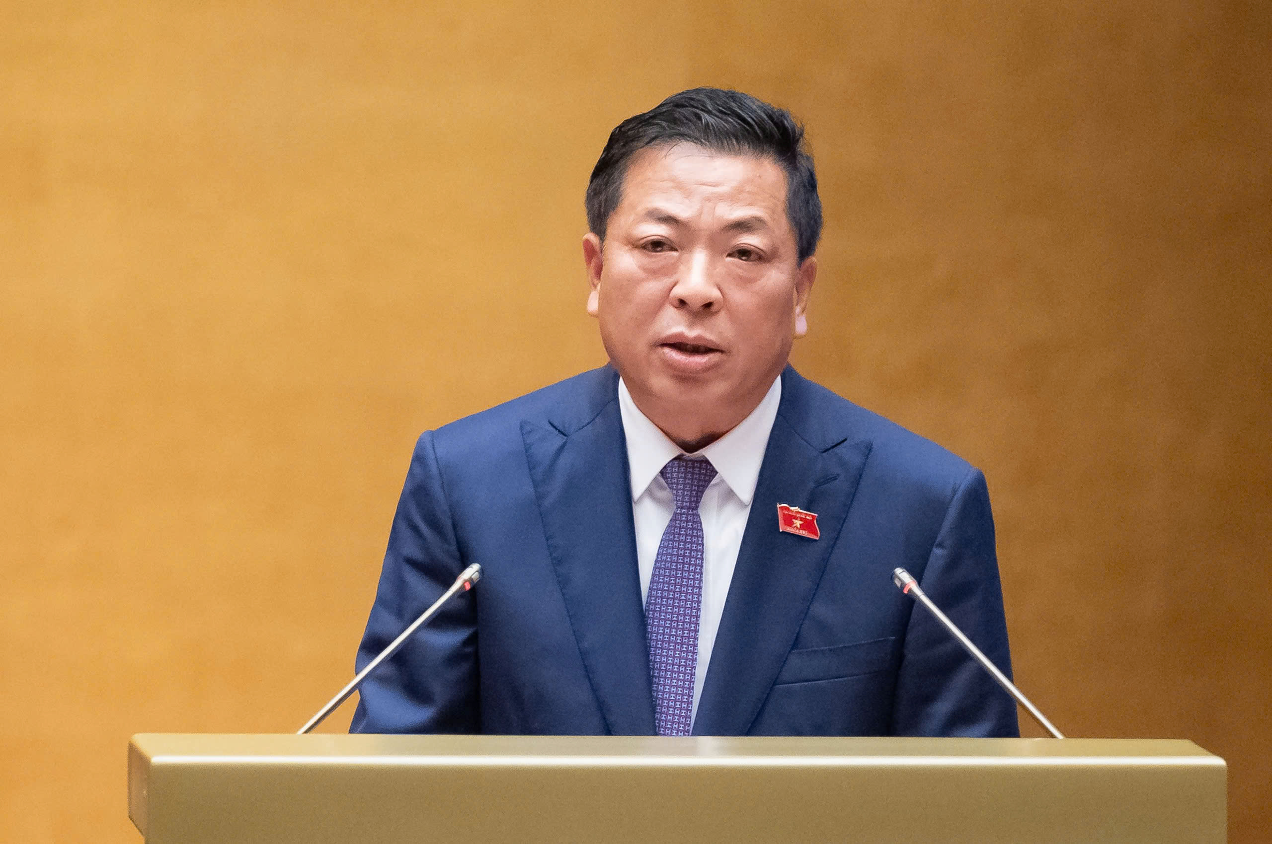 Bộ trưởng Bộ Xây dựng Trần Hồng Minh nhấn mạnh phát triển đồng bộ hạ tầng giao thông là một trong những động lực để phấn đấu đạt mục tiêu tăng trưởng kinh tế hai con số. Ảnh: Media Quốc hội.