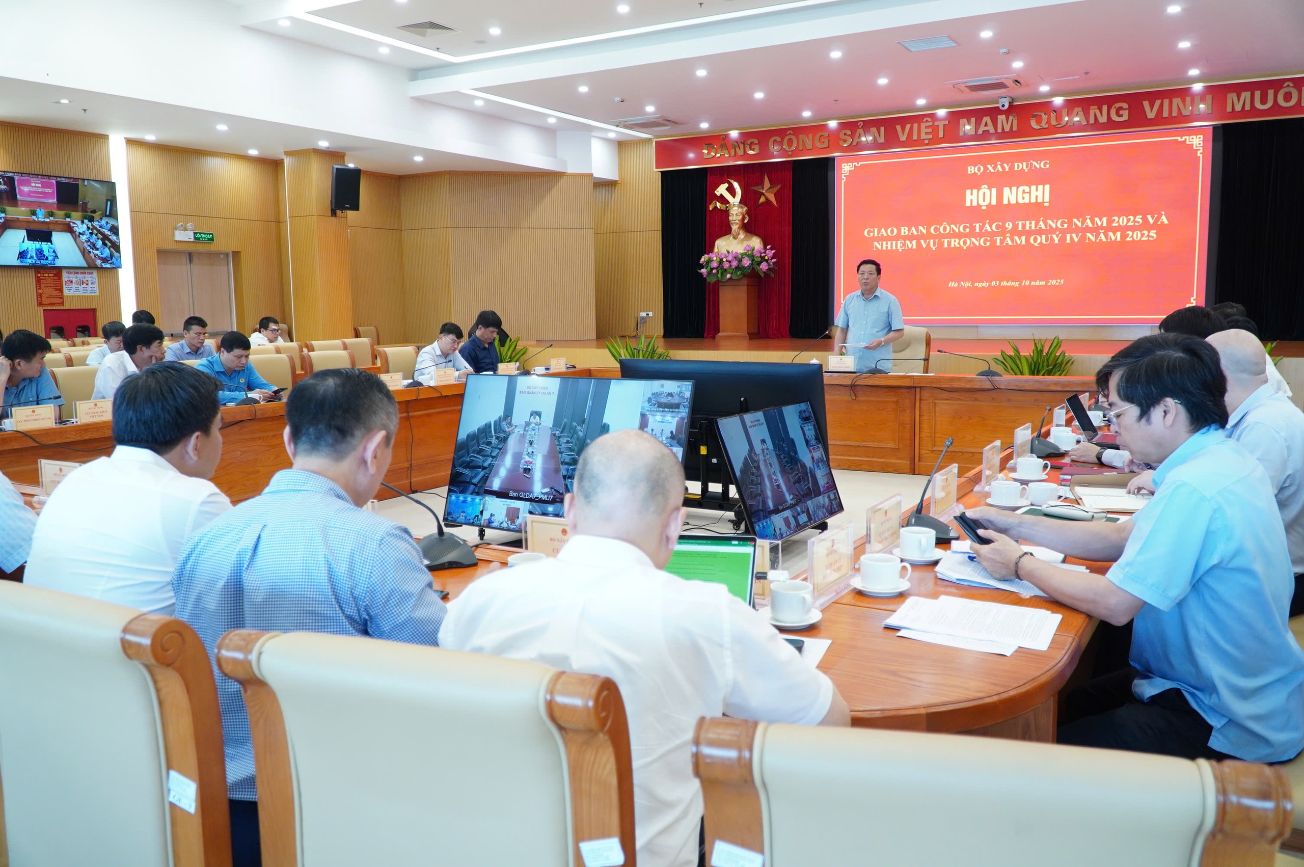 Trước đó, tại hội nghị, các cục, vụ thuộc Bộ Xây dựng lần lượt báo cáo về tình hình tăng trưởng của ngành Xây dựng; công tác xây dựng, hoàn thiện thể chế, tháo gỡ vướng mắc, bất cập các quy định pháp luật trong lĩnh vực Xây dựng; công tác phát triển khoa học công nghệ, đổi mới sáng tạo, chuyển đổi số và xây dựng tiêu chuẩn, quy chuẩn; công tác quy hoạch xây dựng, đô thị… trong 9 tháng đầu năm 2025.