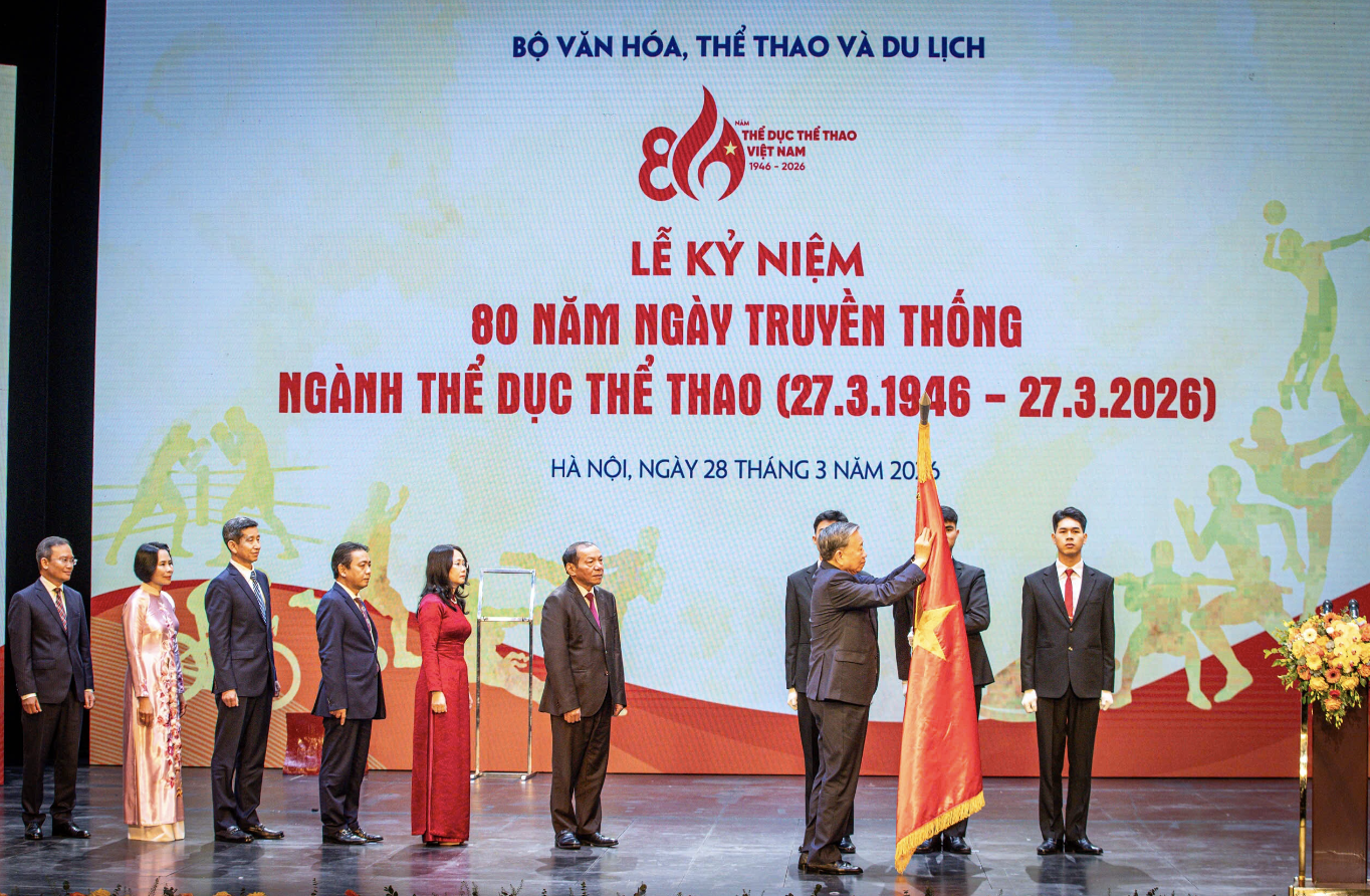 Sáng 28/3, tại Nhà hát Hồ Gươm (Hà Nội), Lễ kỷ niệm 80 năm Ngày truyền thống ngành Thể dục, Thể thao (27/3/1946 – 27/3/2026) được tổ chức trang trọng. Tổng Bí thư Tô Lâm dự Lễ kỷ niệm.